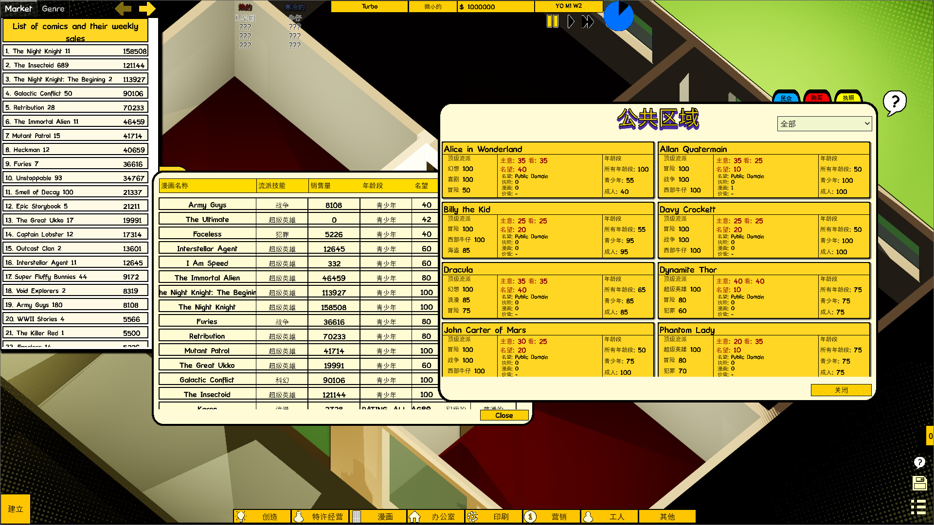 Comic Company Manager是一款漫画书主题的经营类游戏。创建您自己的漫画出版公司,结合 100 多个概念设计您自己的想法。雇用和管理艺术家为您创作漫画并扩大您的公司。成长为行业霸主